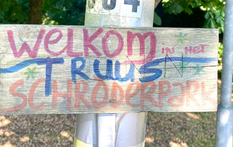 Buren van het Rietveld-Schröderhuis zien graag dat het park de naam krijgt van de voormalige eigenaar: Truus Schröder. Bij een bewonersbijeenkomst hingen ze alvast een naambordje op.
