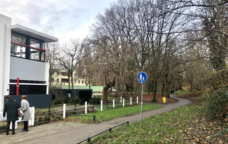 Direct achter het Rietveldhuis ligt een groot parkeerterrein dat nauwelijks gebruikt wordt. Hier kunnen mogelijk parkeervakken vervangen worden door groen met nieuwe wandelpaden.